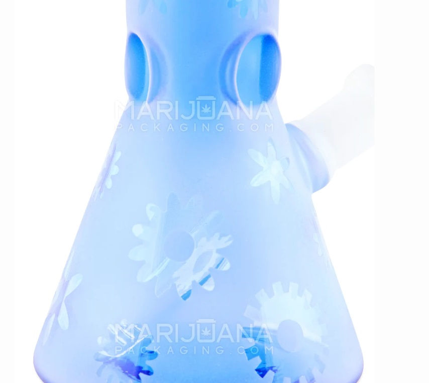 Straight Neck Frosted Snowflake Glass Mini Beaker Water Pipe w/ Ice Catcher | 6in Tall - 14mm Bowl - Blue